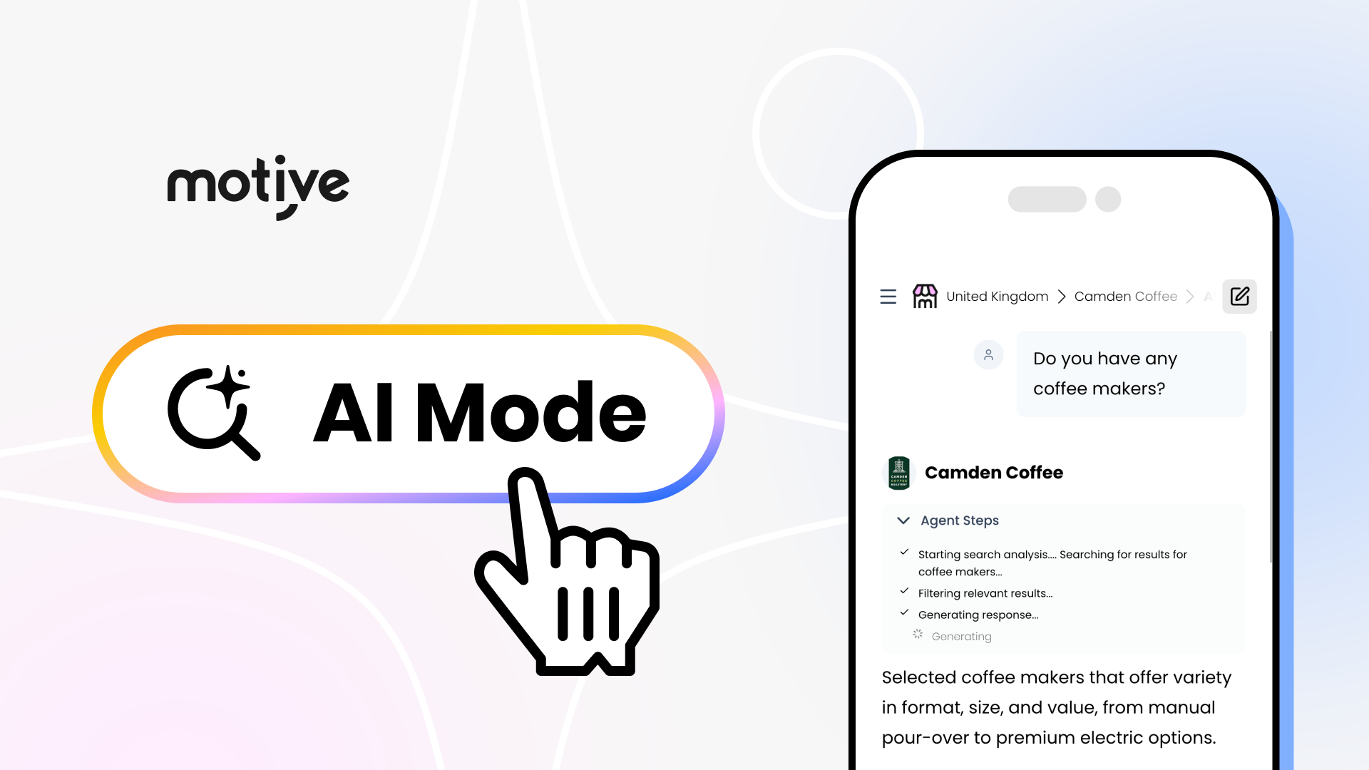 We make your products show up beyond the walls of your shop. Motive auto-generates product and shop pages built for discovery across AI search and traditional search engines, with schema‑rich content and crawlable structures baked in. Get free, qualified traffic through motiveMarket with no setup and zero commissions.
